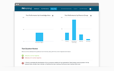 Mark your responses for review later, return to any PMP test question before getting results, and take the test using the same time limits as the real exam.