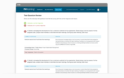 Review the reasoning behind each PMI-ACP test question to understand which responses are correct. This is a great way to fully understand the test answers.